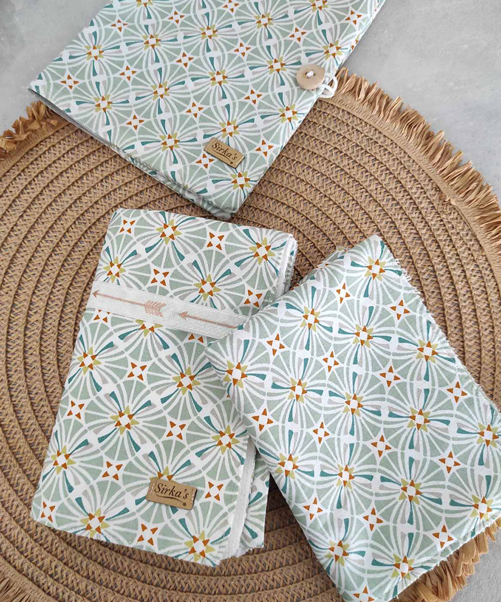 Το κάλυμμα αλλαγής πάνας της συλλογής μας είναι ένα χρήσιμο αξεσουάρ για κάθε αλλαγή πάνας του μωρού σας όπου κι αν βρίσκεστε!! Θα το βρείτε σε διπλή όψη από το αγαπημένο σας βαμβακερό ύφασμα και με επένδυση από χοντρό αδιάβροχο σελτέ που κλείνει όμορφα με ένα διακοσμητικό λαστιχάκι για να το έχετε παντού μαζί σας!!