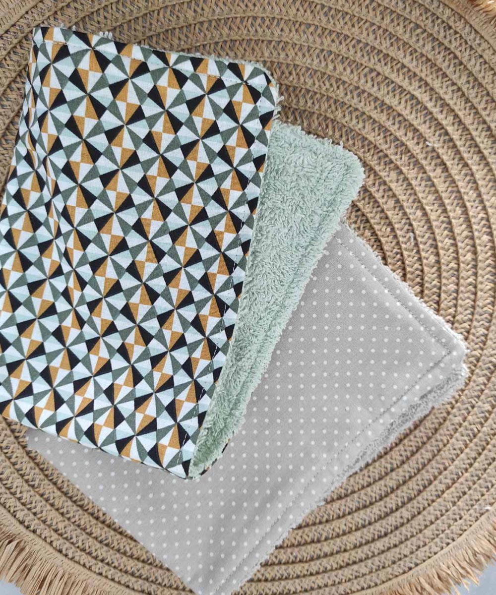 Οι πετσετούλες φροντίδας της συλλογής μας έχουν διπλή όψη από το αγαπημένο σας βαμβακερό ύφασμα πάνω σε ένα απαλό απορροφητικό πετσετέ.